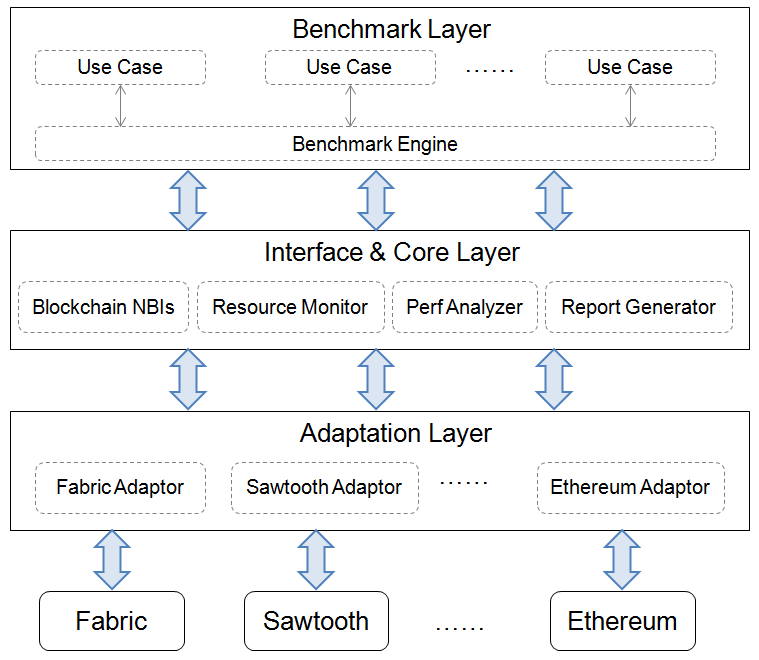 밴치마크 계층은 일반적으로 블록체인에 대해 구현 된 테스트가 포함되어 있습니다. 각 테스트에는 백엔드 블록체인 네트워크와 테스트 인수를 정의하는 구성 파일이 있으며,