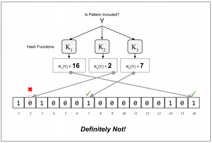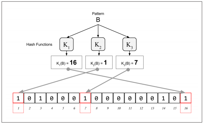 그럼 이렇게 만들어진 블룸필터를 사용하여 어떤 패턴이 실제 존재하는지 검증하는 방법을 보도록 하겠습니다.